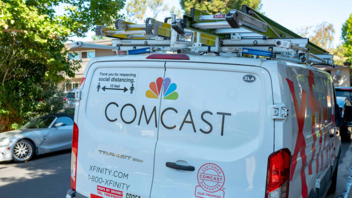 View from behind a Comcast truck parked on a residential street in Lafayette, California, on Sept. 28, 2021.