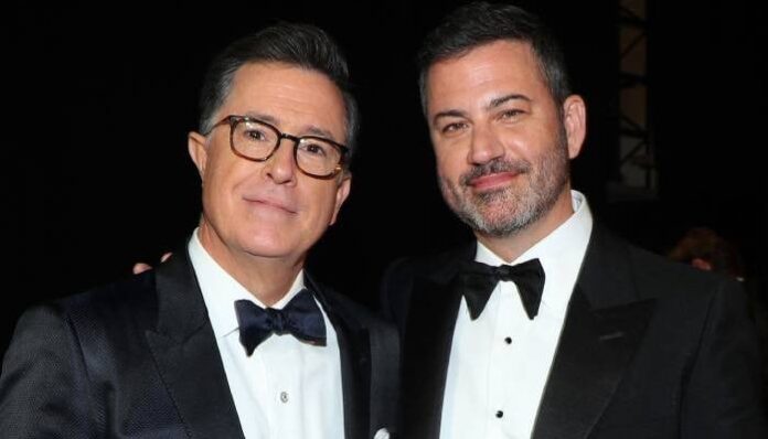 Kimmel quipped, “Thanks to the Trump administration, [Colbert] is now available for a limited time only,” during Colbert’s introduction.